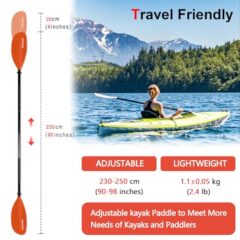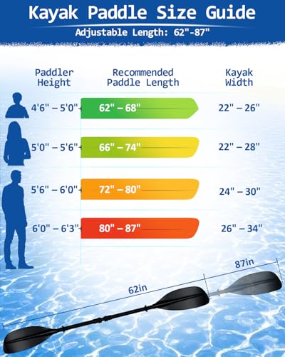Click for More Images Adjustable Length for the Whole Family – Featuring a unique telescopic design with circular locking clamps at both ends, this adjustable kayak paddle extends from 62 to 87 inches, making it ideal for teens, adult women,...