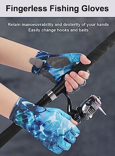 Click for More Images Fingerless Design - Our fishing gloves retain manoeuvrability and dexterity of your hands to easily change hooks and baits. These fingerless gloves are suitable for fishing, kayaking, hiking, paddling, rowing, driving,...