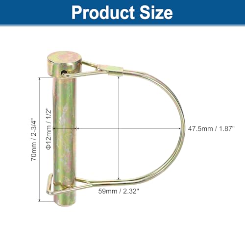 Click for More Images [Size] Pins Dia: 12mm(1/2"); Pins Length: 70mm(2-3/4"); Coil Inner Length: 52mm / 2.05"; Coil Inner Width: 59mm / 2.32"; Ring Thickness: 2mm/0.08"; Package includes: 4Pcs x Linch Pin with Ring[Material] Linch pin is made of...