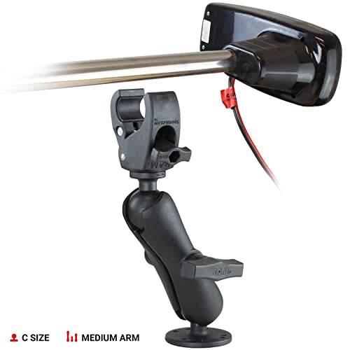 Click for More Images Includes small version of the RAM Tough-Claw, medium length C size RAM double socket arm, and 2.5" round plate with C size 1.5" RAM rubber ballSmall version of the RAM Tough-Claw base is designed to quickly clamp to round,...