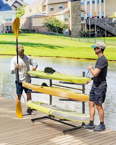 Click for More Images Heavy-Duty Steel: Crafted from high-strength steel, the kayak storage rack is extremely sturdy, supporting 110 lbs per tier, with a total capacity of 660 lbs. Its heavy-duty structural design ensures lasting stability and...