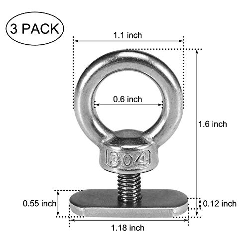 3Pack Stainless Steel Kayak Track Mount Nut Tie Down Eyelet Rail Mount Screw Accessory for Kayak Canoe Boat or Vehicle Rail Track