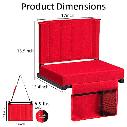 HABUTWAY Stadium Seat for Bleachers with Back Support and Thick Cushion, Bleacher Seat with Shoulder Strap and Side Pocket Hold up 350lbs Bench Chair for Bleachers(Red)