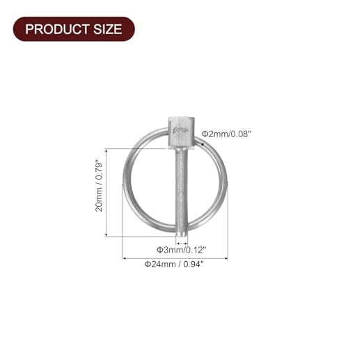 Click for More Images [SIZE & PACKAGE]: The rod diameter of our linch pins is 3mm/0.12", the rod length is 20mm/0.79", the coil diameter is 24mm/0.94", and the ring diameter is 2mm/0.08". The package includes 4 pcs clinch pins to meet your...