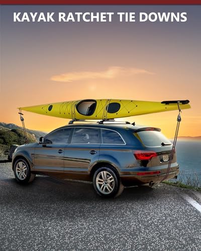 Click for More Images Built to Last: The kayak straps are durable, tear-resistant, and rust-proof with a weight load capacity of up to 150 lbs per ratchet and 300 lbs per 2-packHigh-Quality Materials: The ratchet tie downs are made of solid...