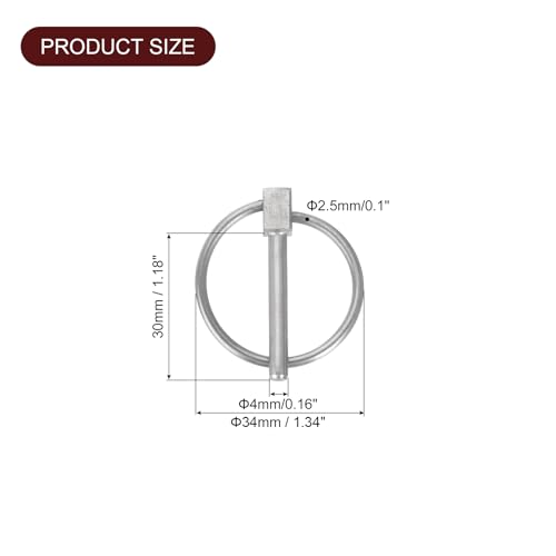 Click for More Images [SIZE & PACKAGE]: The rod diameter of our linch pins is 4mm/0.16", the rod length is 30mm/1.18", the coil diameter is 34mm/1.34", and the ring diameter is 2.5mm/0.1". The package includes 4 pcs clinch pins to meet your...