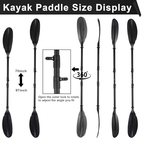 Click for More Images Kayak Paddle: Adjustable 91-inch kayak paddle ideal for powering your kayak through oceans, lakes, or rivers during water-bound adventuresDurable Construction: Constructed with durable and lightweight aluminum materials,...