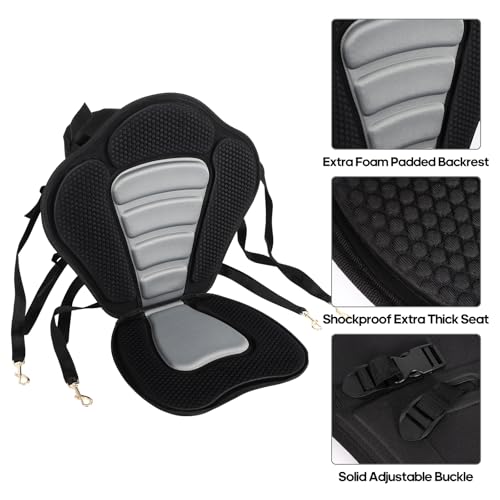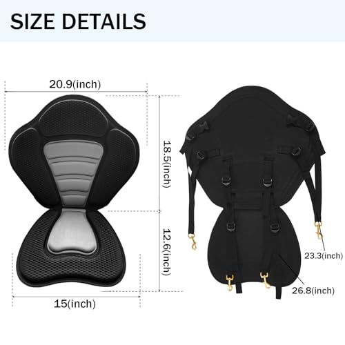 Click for More Images QUALITY MATERIAL: The kayak seat is made of EVA material, take advantage for softer and more cushioning than traditional seats. It's durable and will last a long timeCOMFORTABLE BACKREST: With ergonomic backrest is 20" in...