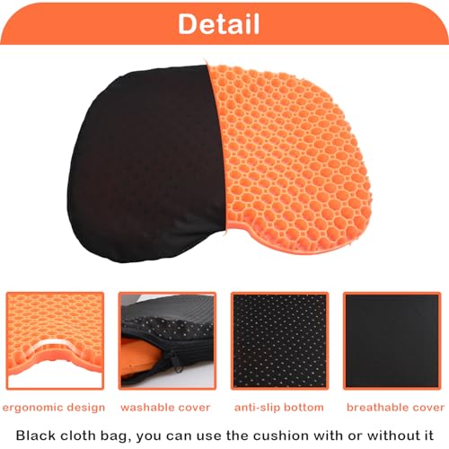 Click for More Images HONEYCOMB GEL DESIGN: The thick gel seat cushion adopts a special U-shaped ergonomic design, which perfectly fits the curve of the buttocks and disperses the pressure on the entire buttocks and thighs. The honeycomb grid...