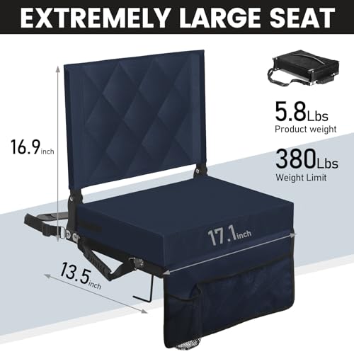 Click for More Images PRO.BEYOND.Your Favorite Stadium Seats for Bleachers with Back Support: Featuring 2.8-Inch soft, padded bleacher cushion for unparalleled comfort and 16.5-Inch high padded back support so you can enjoy sporting events all...