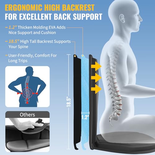 Click for More Images High Back Support, Back Pain Relief - 18.5 inch high tall backrest supports your spine and 1.2 inch thicken molding EVA adds nice support and cushion. The ergonomi design for long lasting exceptional support and comfort for...