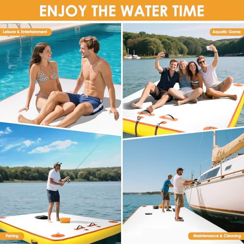 Click for More Images Dependable Floating Dock, 20% More Floatation: This inflatable floating dock features a 6-inch thickened design with reinforced seams, ensuring airtightness and durability. Made of double-layer premium PVC, it's...