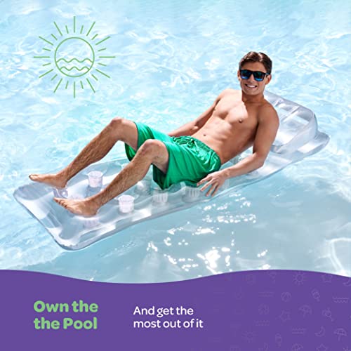 Click for More Images LUXURIOUS LOUNGER: Get the real pool experience, stretching out on a comfy pool float with your head supported on a cushioned headrest.STAY COOL: 18 pockets beneath your back fill with water to keep you deliciously cool and...