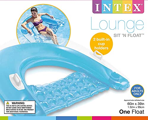 Click for More Images Intex Sit 'n Float Pool Lounge 60" x 39"Place refreshment inside the convenient built-in cup holder, sit back, and enjoy the fun!Includes: Two air chambers. Two cup holders. Two grab handles for stability.Approximate...