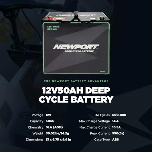 Click for More Images 30lbs - The lightweight design of the Newport deep Deep cycle battery makes it easy to transport and install in your marine vessel. Enjoy powerful and reliable performance without adding unnecessary weight to your...