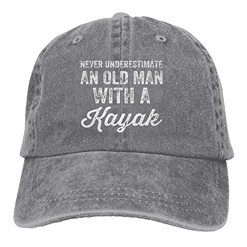 Kamaple Never Underestimate An Old Man With A Kayak Adjustable Washed Cap Cowboy Baseball Hat Ash