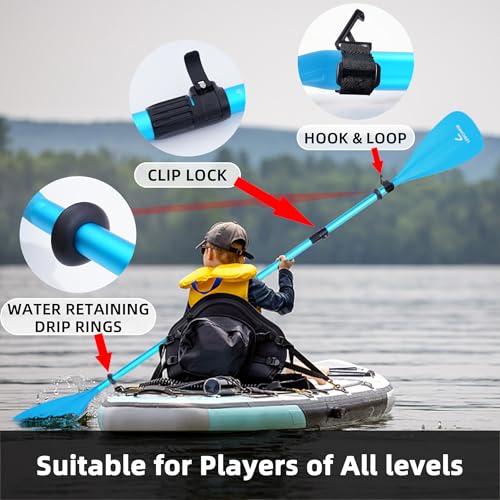 Click for More Images ?????? ??? ???????: The kayak paddles adopt a strong aluminum shaft and reinforced fiberglass blades, which are impact-resistant and durable; the curved and streamlined design of the blades makes it easier to cut water and...