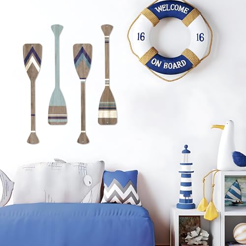 Click for More Images Unique Design: You will receive 4 pieces of nautical metal paddle decorations with different patterns, where soothing hues and retro style bring relaxing charm to your homeSturdy Material: Each nautical paddles wall...