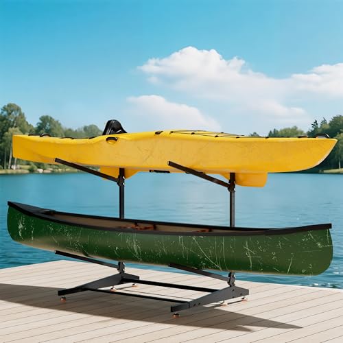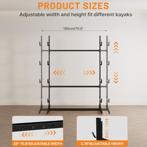 Click for More Images 4-Tier Heavy Duty Kayak Rack: This kayak storage rack features 4 sturdy tiers to hold kayaks, paddleboards, surfboards, and other water sports gear. Each arm supports up to 100 lbs, with a total capacity of 450 lbs.Indoor &...